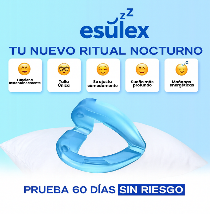 Esulex reposiciona la mandíbula para mantener abiertas las vías respiratorias, reduciendo instantáneamente los ronquidos desde la primera noche.